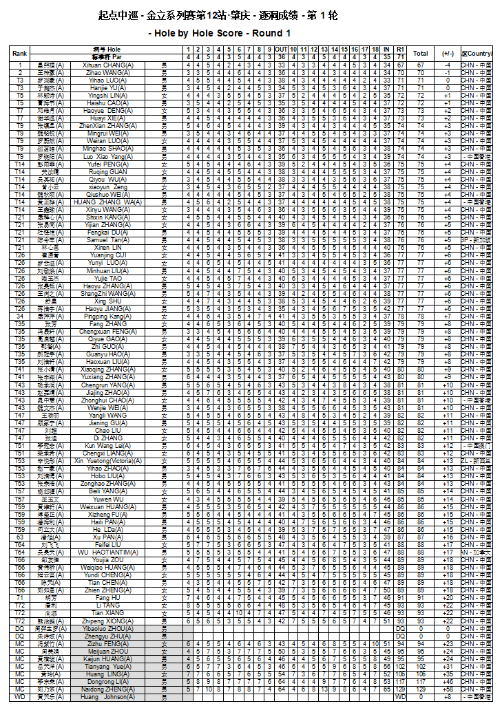 首轮逐洞成绩