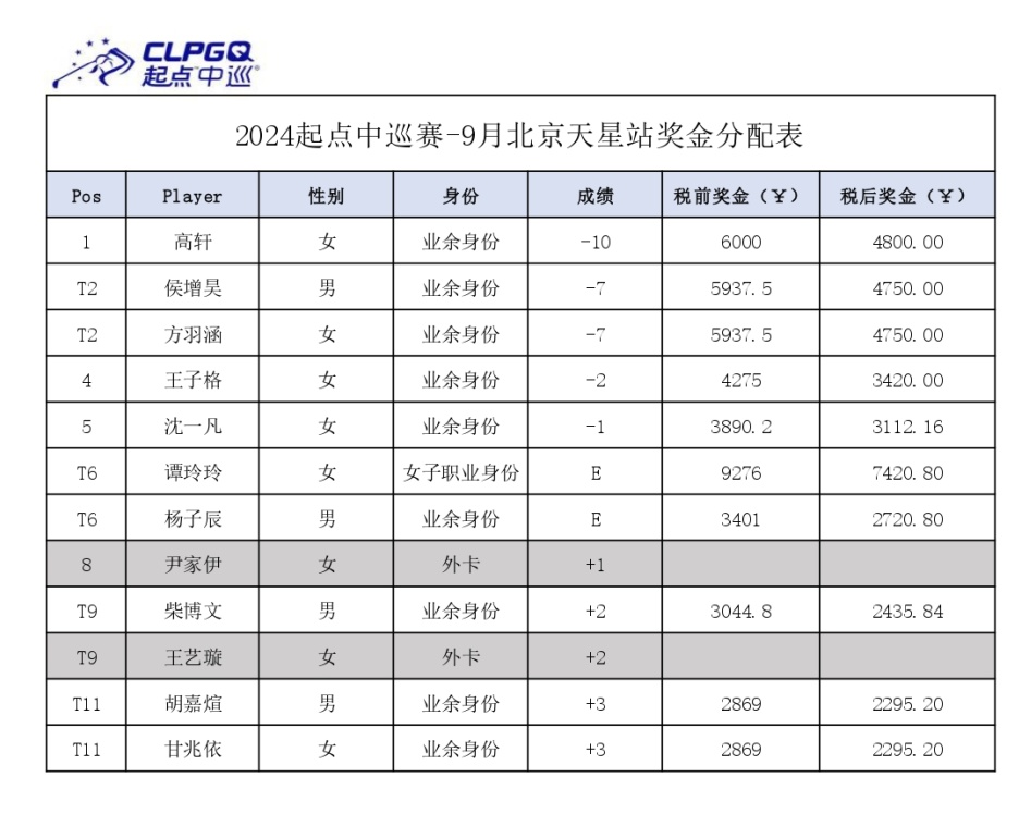 北京时间9月24日,起点中巡北京天星系列赛第7站在北京东方天星乡村俱乐部(男子7071码,女子6167码)圆满落下帷幕。女子业余小将高轩在决赛轮迎来爆发,交出全场最佳65杆,不仅突破个人最低杆记录,更以3杆优势斩获起点中巡赛场个人首冠!