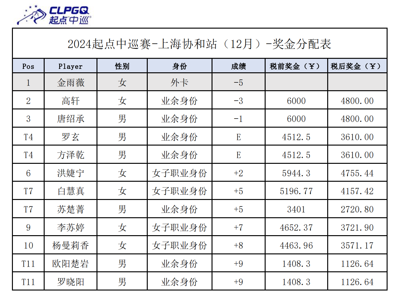 至此,起点中巡2024年收官战上海系列赛圆满落幕。2025赛季首站——厦门东方系列赛,及全新的海口观澜湖系列赛报名已经火热开启,2025年1月6日至7日,起点中巡的到来为众多潜力选手的高球征程再添一种选择,交流切磋、锤炼球技,期待与你相遇!