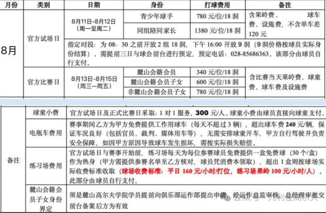 费用不包含项目:球场下场费用、交通费、食宿费用以及球童小费等各项费用。其中,球童小费建议每18洞不低于300元起。(球童费及在球场的费用需参赛球员与球场直接结算)