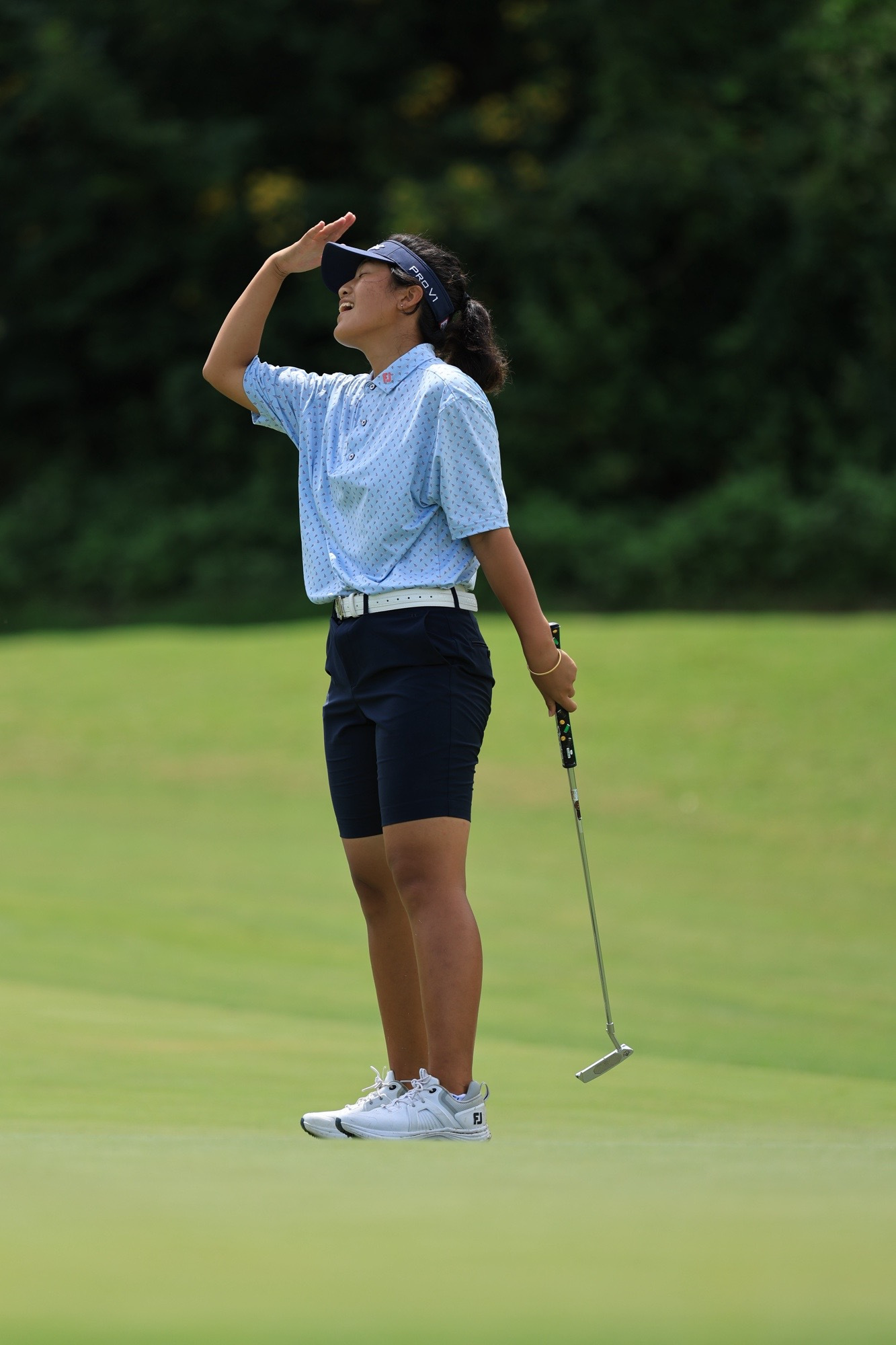 决赛轮开始时,她坦言自己“打得有点像在睡觉”,天气阴沉、身体尚未完全进入状态,让前几个洞显得有些拘谨。尤其在5号洞,唐榕泽5码的鸟推未进,一码半的保帕推又因为球面上的沙粒受到了影响,最终吞下柏忌。“那一刻感觉脑袋‘嗡’了一下。”她回忆说。却也正是这个失误让她瞬间清醒,进入专注状态,在7、8号洞连续拿下两只小鸟!