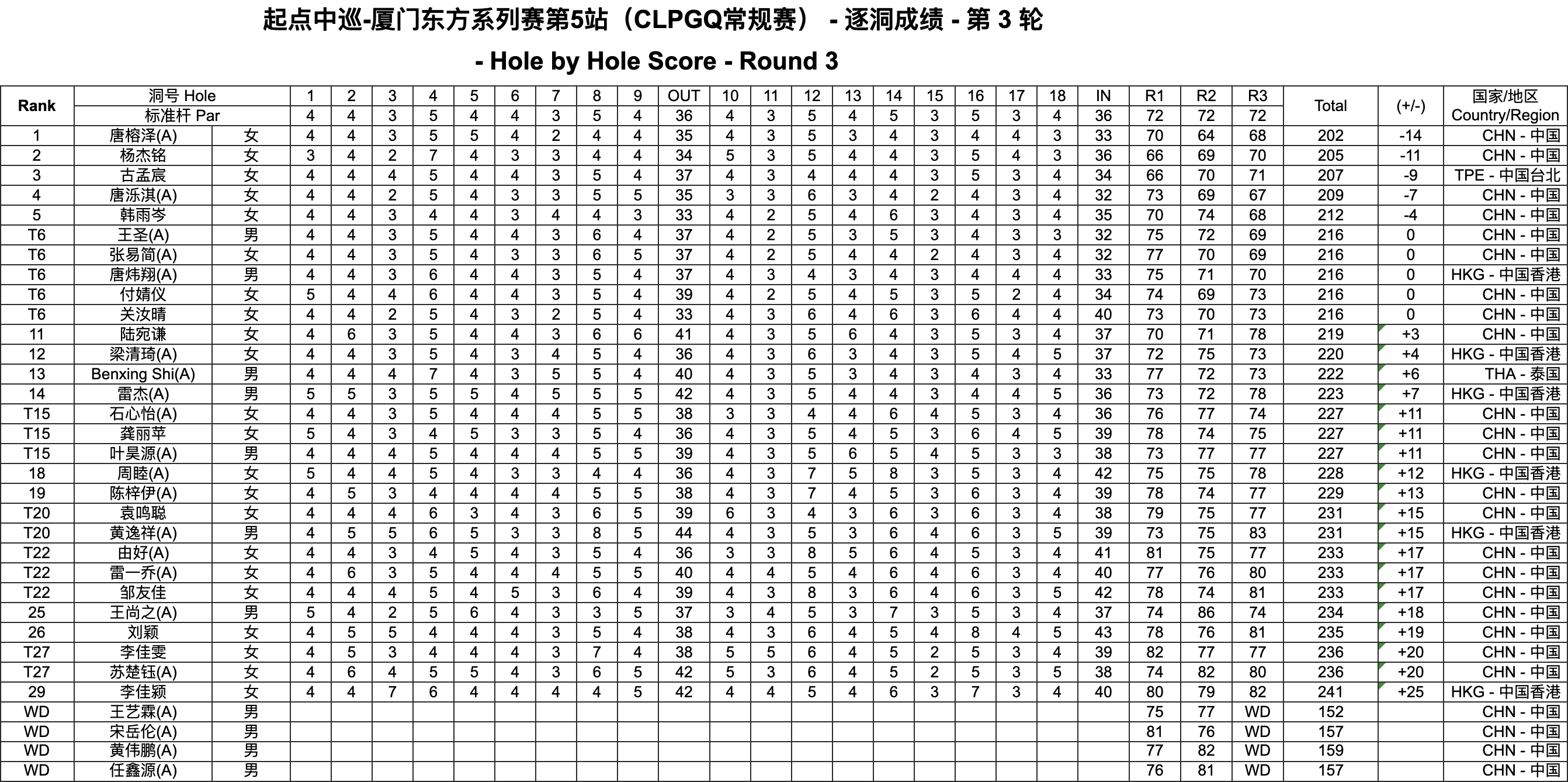 北京时间9月9日,起点中巡-厦门东方系列赛第5站(CLPGQ常规赛)在东方(厦门)高尔夫乡村俱乐部(BC场)圆满落幕。36洞领先者唐榕泽在决赛轮再交六字头,守住优势,以202杆(-14)佳绩加冕起点中巡第二冠!
