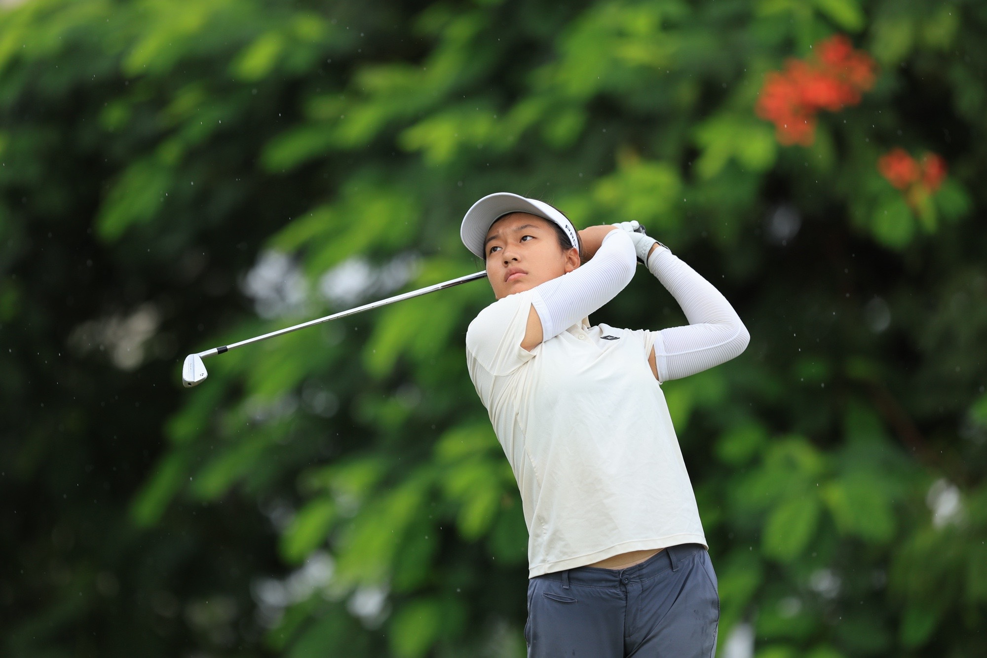 尽管随后在17号洞因为三推而丢掉一杆,但18号洞她用48°挖起杆精准将球送到洞口边1码处,轻松推进小鸟,为比赛画上了完美句点。“这场比赛看到铁杆和推杆的进步很大,虽然开球还是有些不稳定,但整体的提升让我更有信心。”唐榕泽说。
